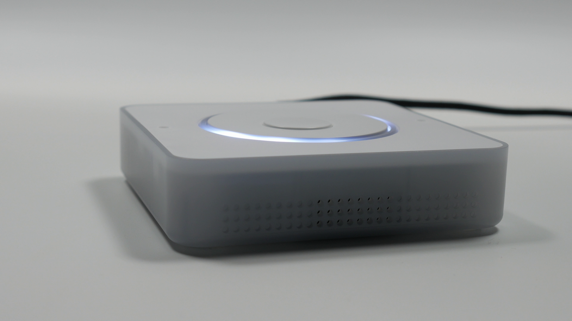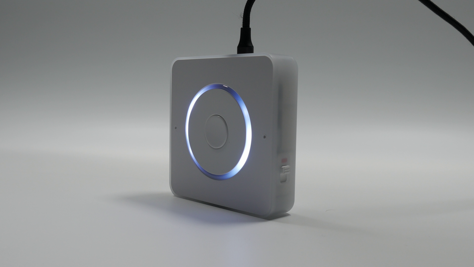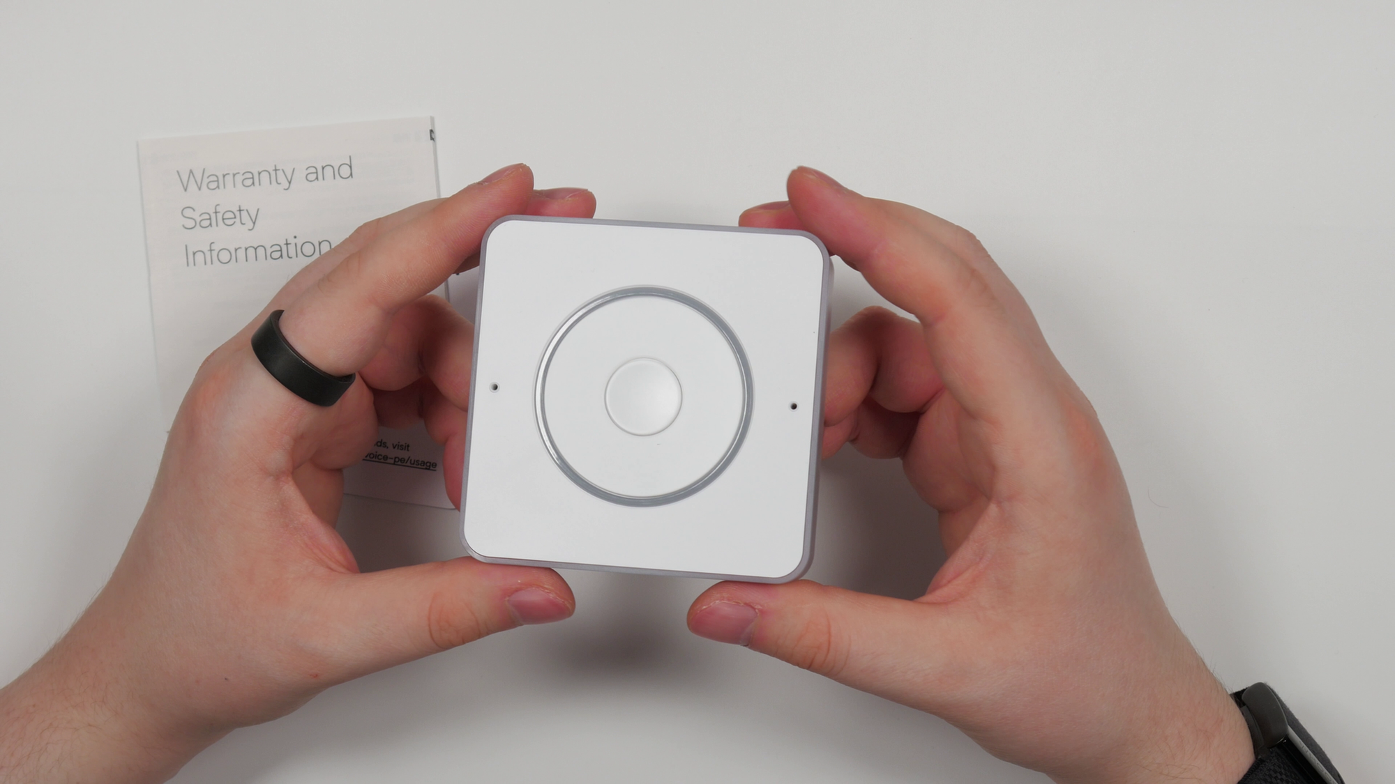 Das Gerät selbst wirkt zurückhaltend und funktional. Das Gehäuse ist kompakt. Auf der Oberseite befinden sich ein Drehregler für die Lautstärke und eine Klicktaste. Ein umlaufender LED-Ring signalisiert den aktuellen Status, etwa beim Zuhören oder wenn das Mikrofon stummgeschaltet ist. Zwei integrierte Mikrofone sorgen für die Spracherkennung. Ein physischer Schalter trennt diese bei Bedarf komplett vom Strom. Auf der Rückseite befinden sich der USB-C-Anschluss zur Stromversorgung und ein 3,5-mm-Klinkenanschluss, über den sich das Audiosignal an externe Lautsprecher weitergeben lässt. Gerade dieser Anschluss hebt das Gerät von vielen klassischen Sprachassistenten ab.