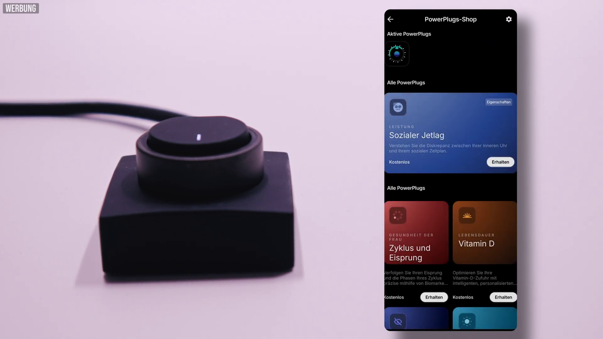 - Power Plugs: Erweiterbare Funktionsmodule (z. B. Vitamin D, intelligenter Wecker, Bildschirmzeit). Die meisten davon sind kostenlos, nur wenige erfordern ein Zusatzabo.