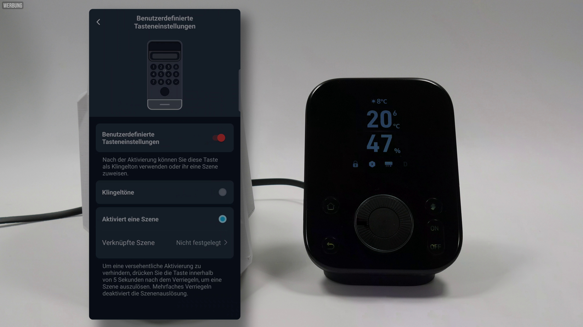 KeypadVision Klingel-Knopf (links) | SwitchBot Hub 3 (rechts)