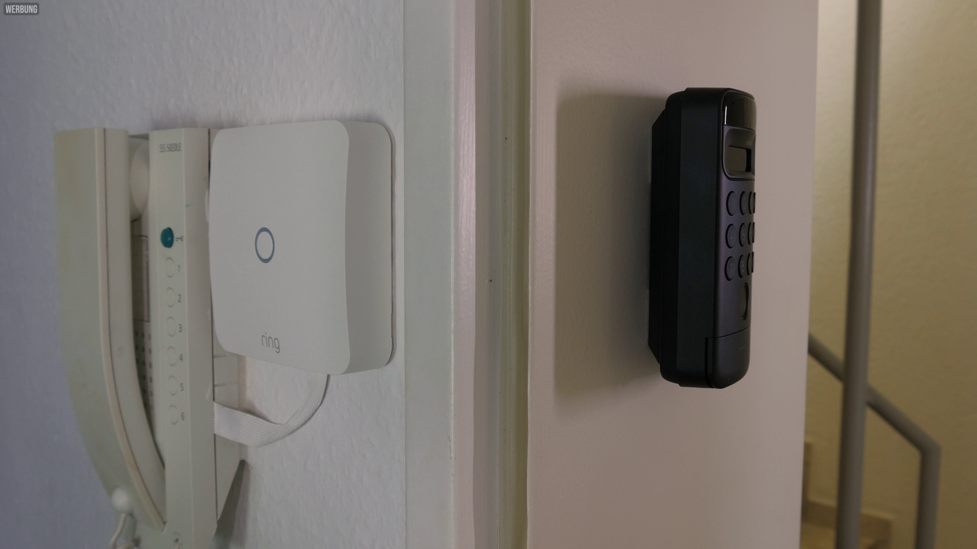 Ring Intercom neben KeypadVision (links) | LockUltra, KeypadVision, NFC-Karte (rechts)