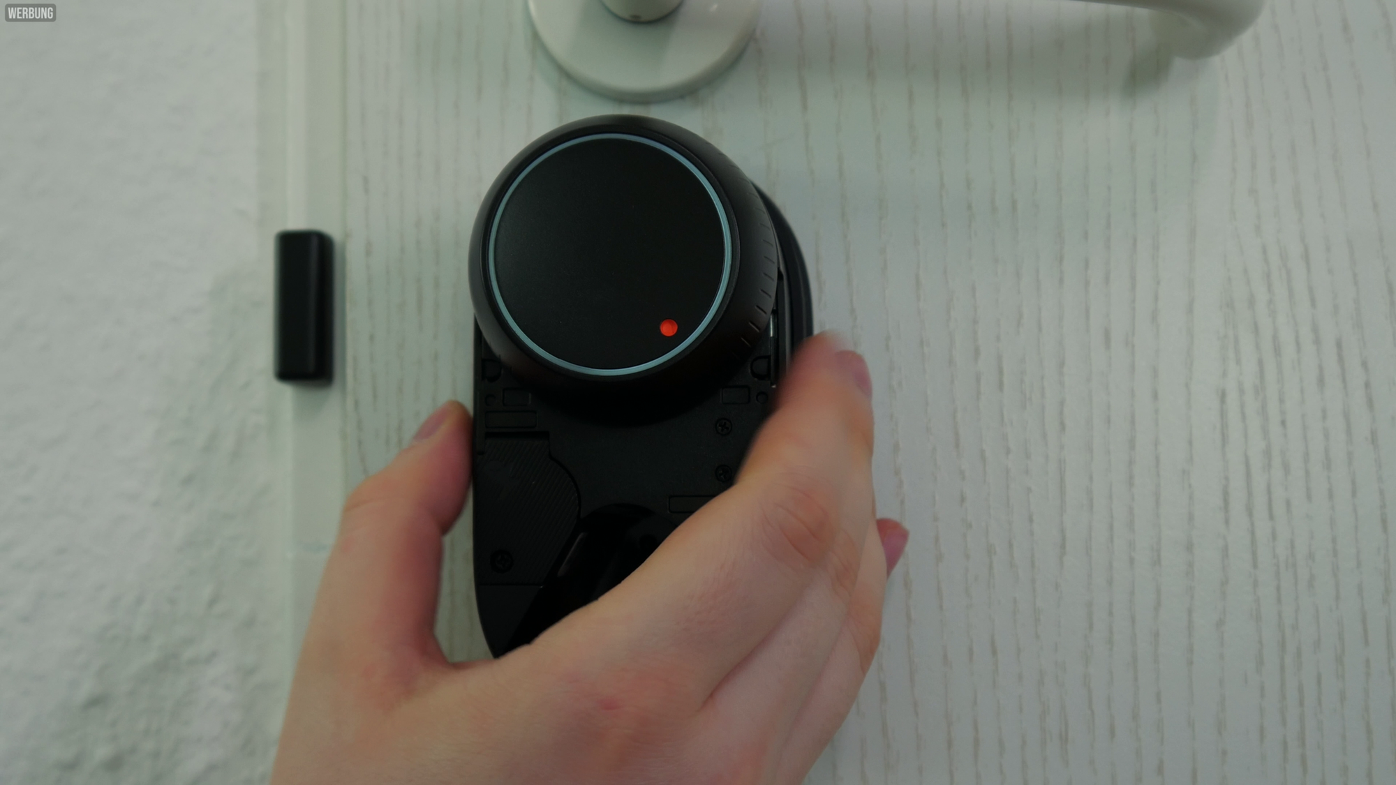 Bei mir passte es perfekt: Da mein Türzylinder weit genug aus der Tür herausstand, konnte ich das Schloss ganz einfach mit Schraubklemmen befestigen. Es war weder Bohren noch Kleben nötig und es entstanden keine Beschädigungen an der Tür. Für Mieter ist das definitiv ein großes Plus. Bei Türen, bei denen der Zylinder flach abschließt, bietet SwitchBot alternativ Klebestreifen an, die sich rückstandslos entfernen lassen sollen. Eine zusätzliche Blende verdeckt den Spalt zwischen Schloss und Türrahmen, sodass alles wie aus einem Guss aussieht.