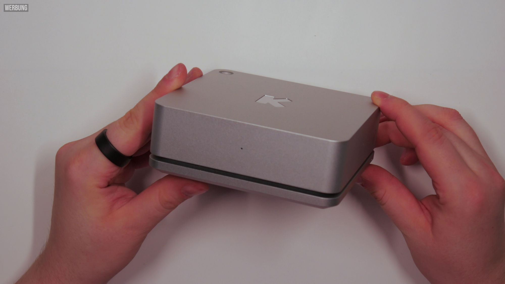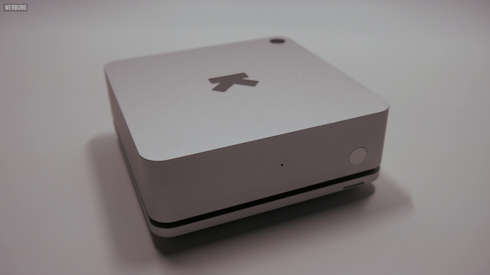 Bereits beim Auspacken macht der Ultrahuman HOME einen hochwertigen Eindruck. Das Gehäuse aus Aluminium erinnert in seiner Form stark an einen kompakteren Mac Mini – eine bewusste Designentscheidung, die das Gerät problemlos in Wohn- oder Schlafräumen verschwinden lässt und dennoch edel wirken lässt. Die Front beherbergt eine Status-LED und einen Multifunktionsknopf, während die Oberseite einen transparenten Bereich für verschiedene Lichtsensoren besitzt. Die Unterseite ist von Luftschlitzen durchzogen, durch die die Raumluft angesaugt wird. Auf der Rückseite befinden sich der USB-C-Port für die Stromversorgung sowie zwei physische Schalter, die Mikrofon und WLAN komplett deaktivieren können. Gerade diese Hardware-Schalter sind ein starkes Signal in Richtung Datenschutz und Nutzerkontrolle.
