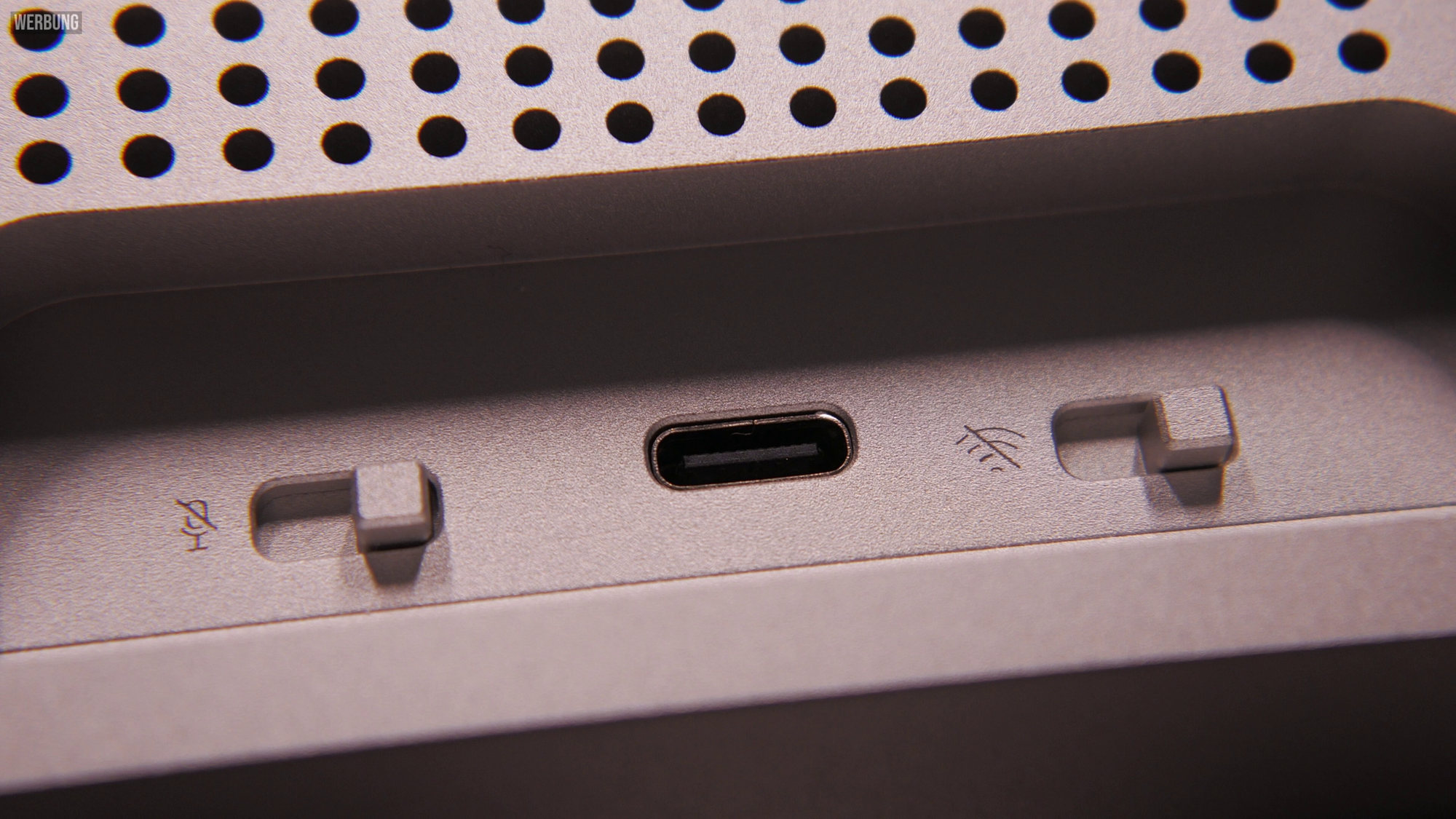 Mechanische Switches zur Deaktivierung von Mic und WiFi (links)