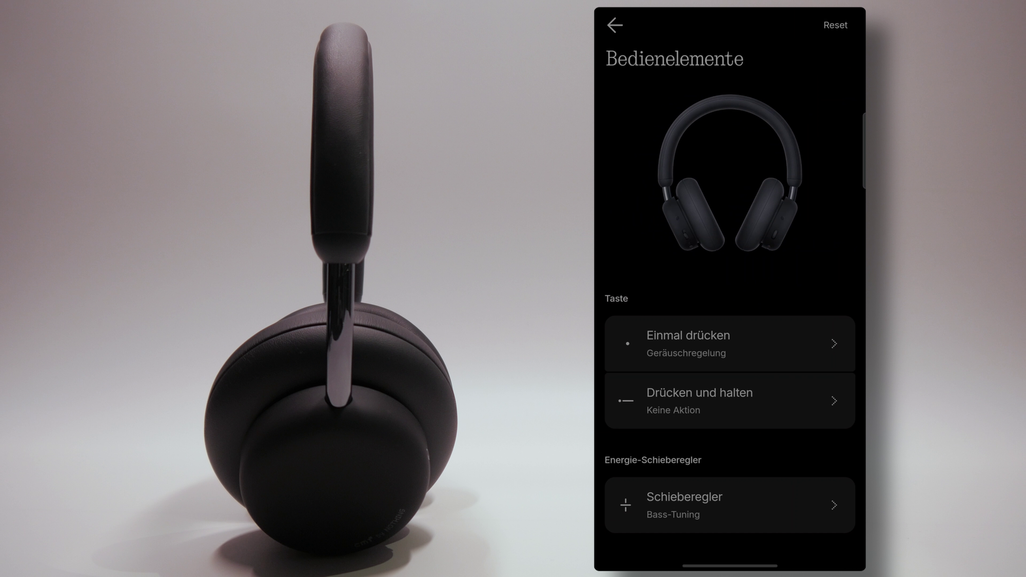 Glücklicherweise kann man sowohl den EQ als auch den Bass-Regler an der linken Ohrmuschel über die App anpassen. Wenn man den Bass voll aufdreht, wird es sehr wuchtig - fast zu viel des Guten. Bei neutraler Einstellung bleibt der Klang ausgewogen, ohne an Druck zu verlieren.